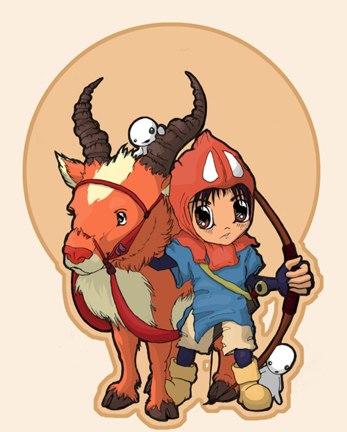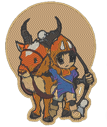 Custom anime embroidery design and pattern features the character Ashitaka in chibi style from the anime Princess Mononoke.