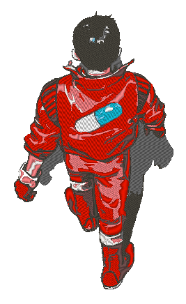 This custom anime embroidery design and pattern features the character Shotaro Kaneda as he walk away from the anime series Akira.