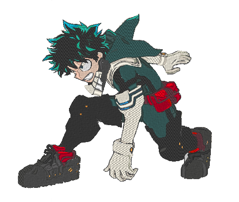 This custom anime embroidery design and pattern features the character Deku as he stride from the anime series MHA (My Hero Academia).