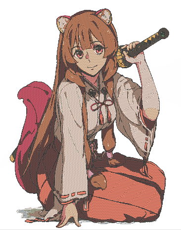 This custom anime embroidery design and pattern features the character Raphtalia as she sit from the anime series The Rising of the Shield Hero.