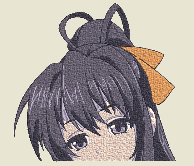 Custom anime embroidery design and pattern features the character Akeno Himejima as she peeks from the anime series High School DxD.