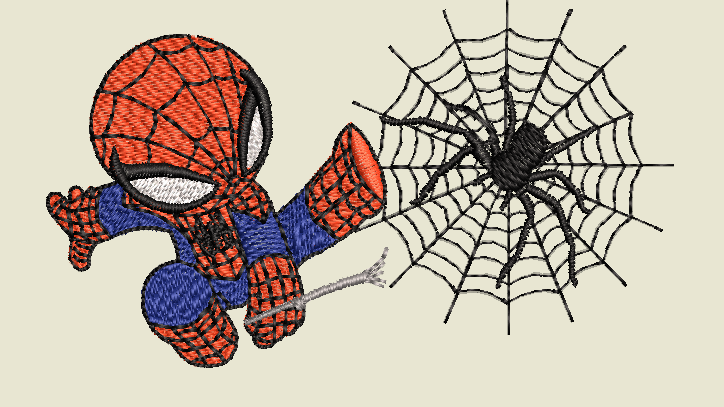This custom embroidery design and pattern features the character Spiderman as he jump in chibi style.