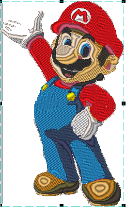 Videogame embroidery pattern is of the character Mario from the Super Mario video game series.
