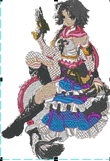 This custom anime embroidery design features the character Yuna from the video game Final Fantasy X2 with a pretty dress.