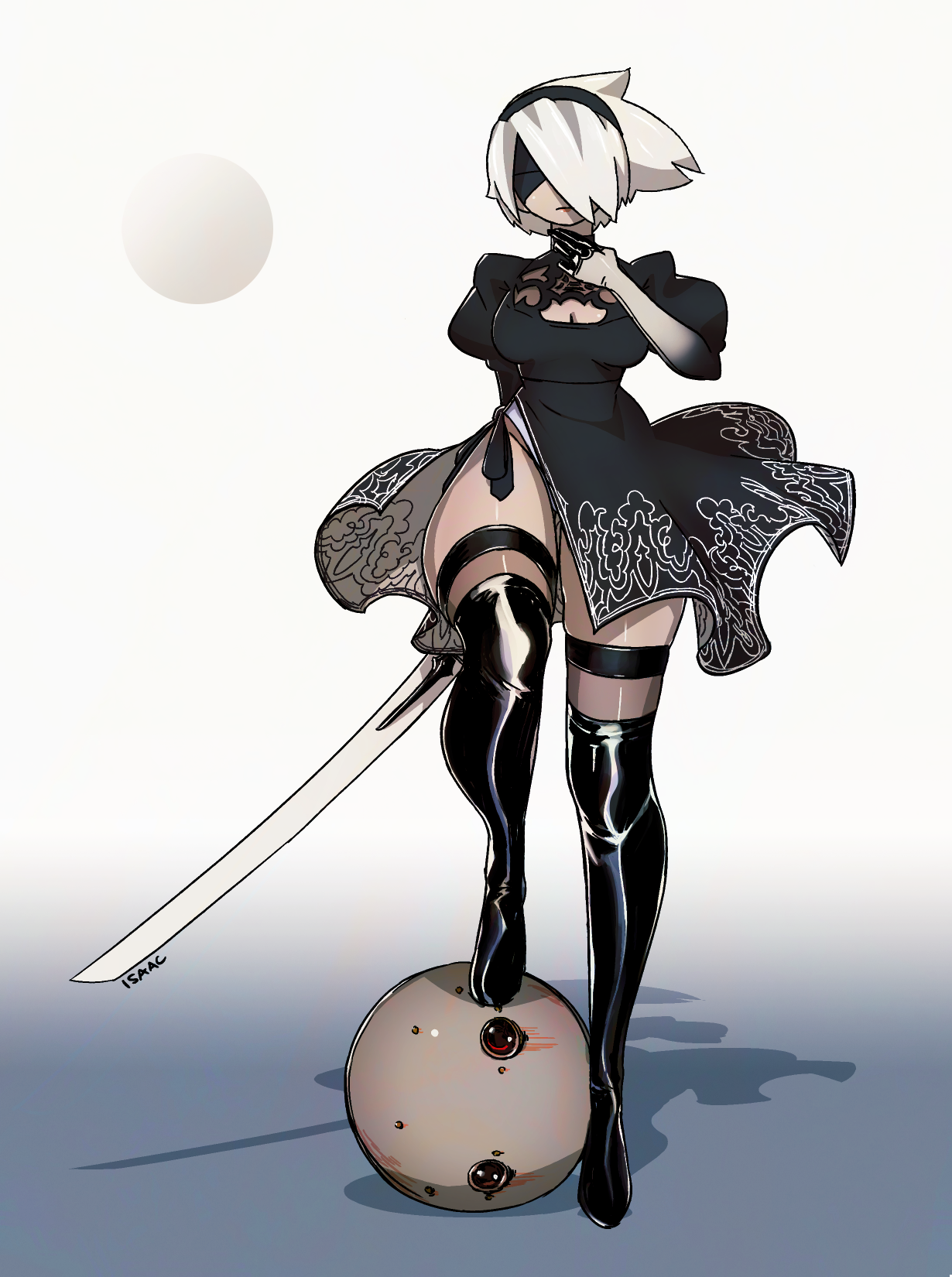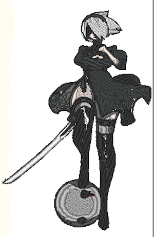 Custom Anime Embroidery and video game design and pattern features the character 2b from the video game series Nier Automata YoRHa No. 2 Type B from the video game series Nier Automata.