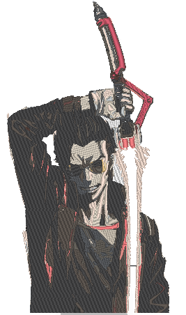 Custom anime and video game embroidery design and pattern features the character Travis Touchdown in an enguard position from the video game NMH (No More Heros).