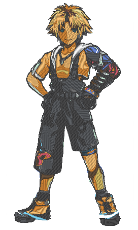 This custom anime embroidery design and pattern feature the character Tidus as he stands from the video game series FinalFantasy.