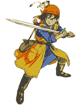 This custom embroidery design and pattern features the character "Eight" Hero from the video game Dragon Quest VIII.