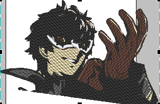 Custom embroider design and pattern featuring the protagonist character from the persona 5 video game series in his Joker form.