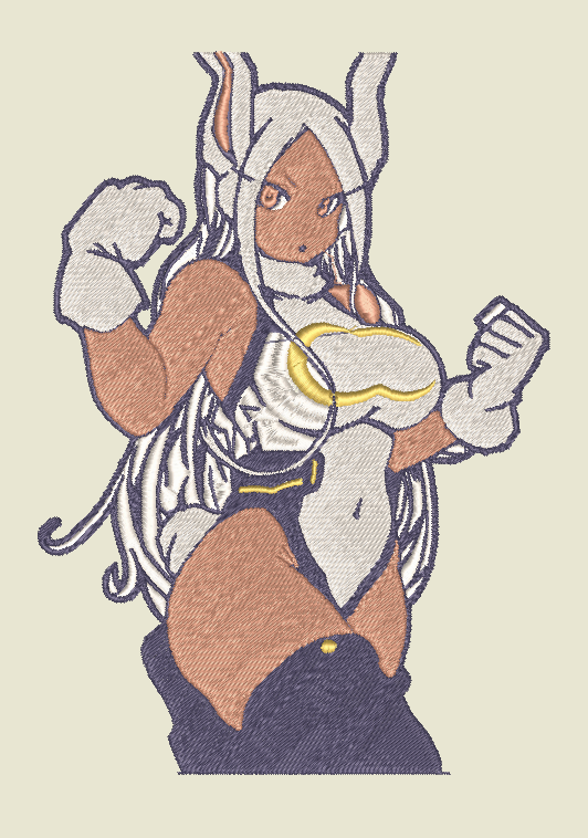 This custom anime embroidery design and pattern features the character Bunny Mirko from the anime series My Hero Academia MHA.