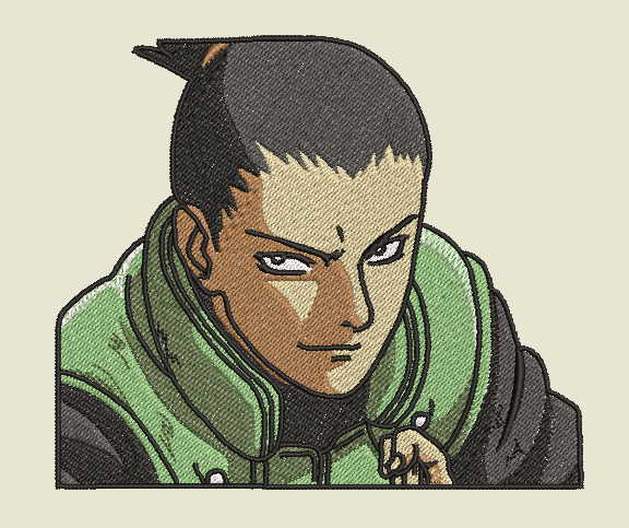 This custom anime embroidery design and pattern features the character Shikamaru Nara posed from the anime series Naruto Shippuden.