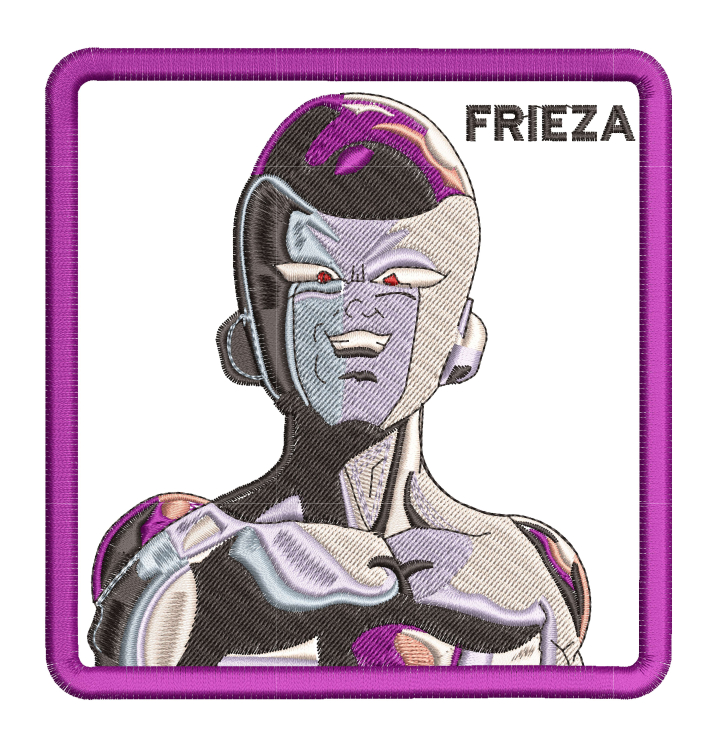 This custom anime embroidery design and pattern features a Dragonball Frieza character done for a square patch.